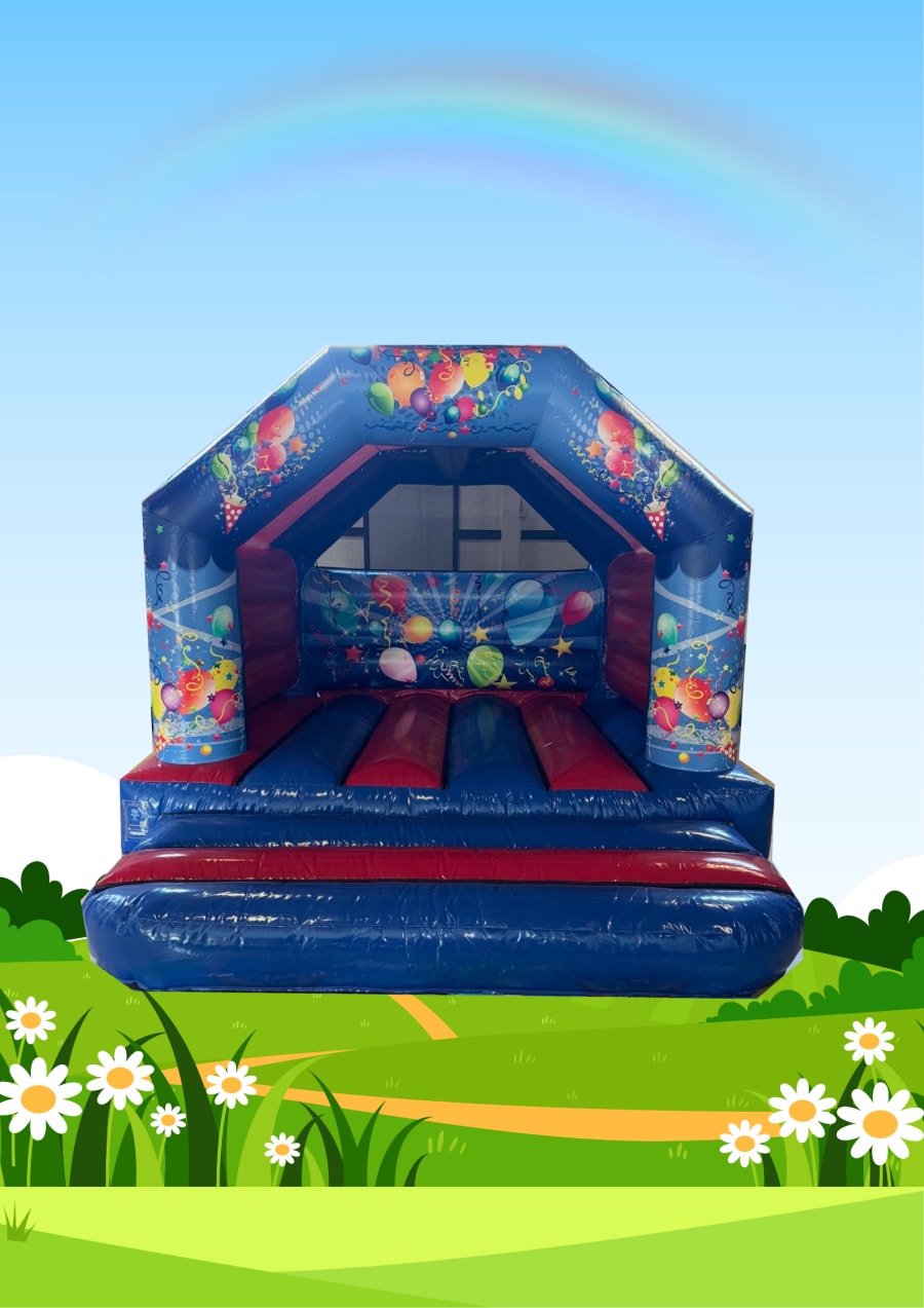 12ft x 12ft Red & Blue Party Theme Bouncy Castle Hire